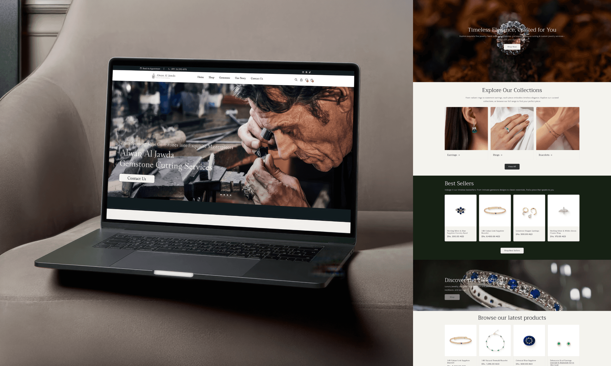 Alwan Al Jawda needed to look and feel like a premium jewelry brand online, starting from almost nothing. I led the content direction to elevate the product photography diretion and overall presentation, then built a Shopify store to bring the brand to life as a complete, shoppable experience. The focus was on clean imagery, clear collections, and an online presence that finally matched the quality of the pieces.
