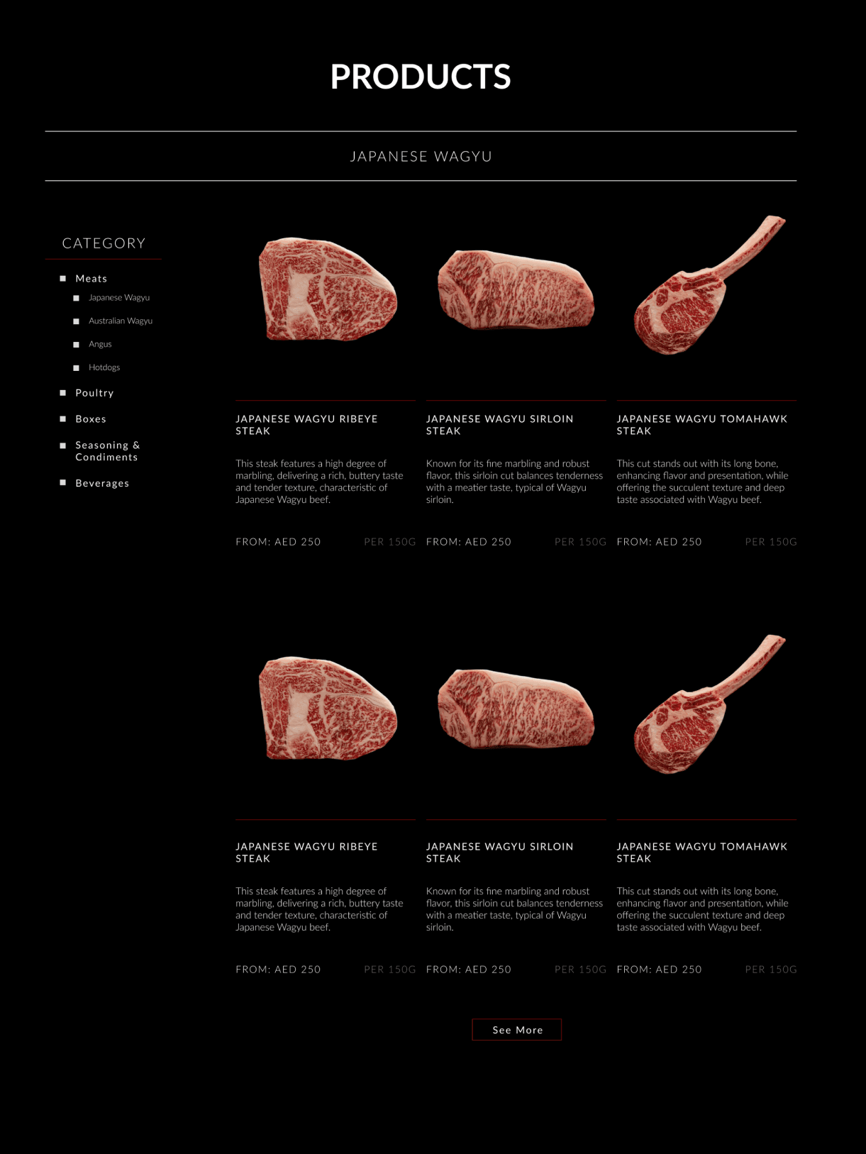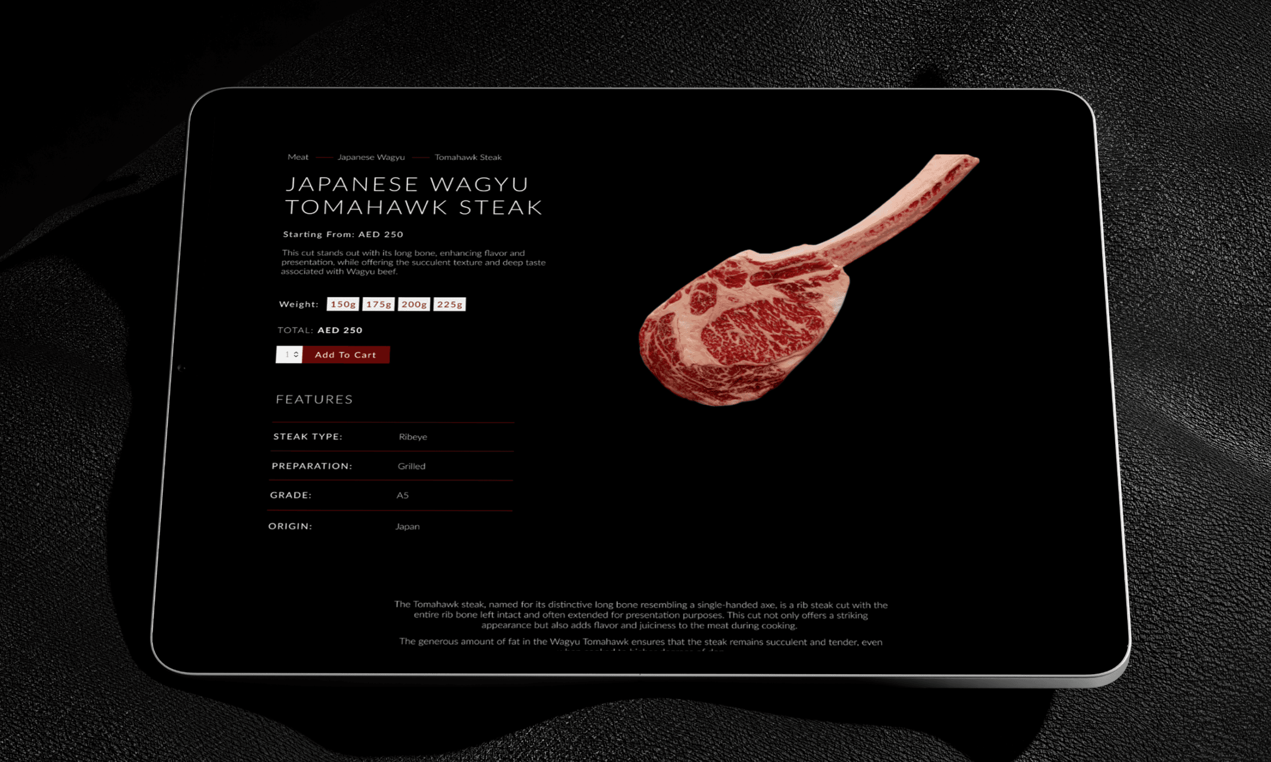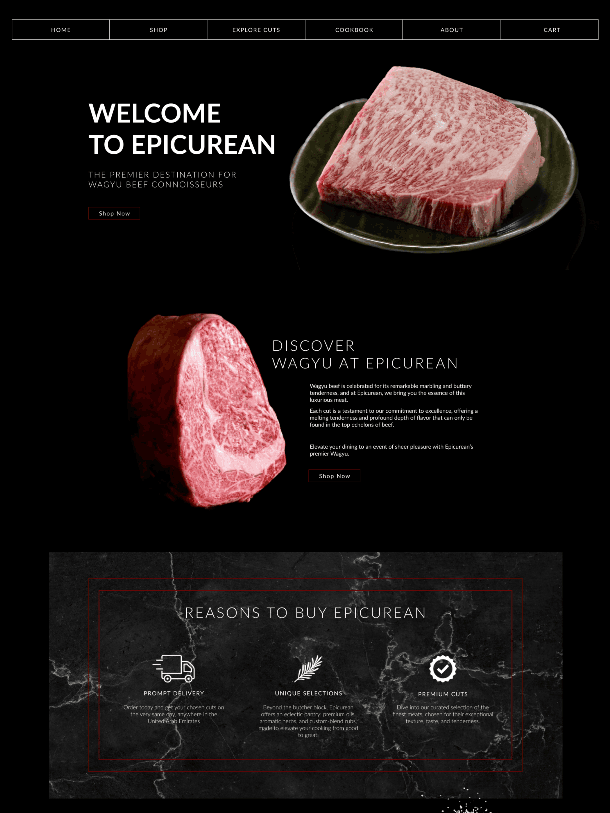 Epicurean needed a premium online storefront for an A5 wagyu butchery that could make the product feel rare, precise, and worth the price. I built the website from scratch with a dark, minimal visual language, strong product hierarchy, and clear detail pages so customers can understand each cut quickly. The result is a focused shopping experience that feels more like a luxury brand site than a standard meat catalogue.